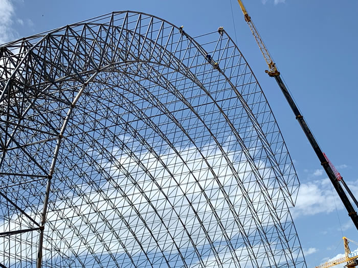 (2)網(wǎng)架加工前應(yīng)對現(xiàn)場尺寸進(jìn)行復(fù)測,確認(rèn)無誤后方可進(jìn)行加工、安裝;網(wǎng)架制作、運(yùn)輸、安裝應(yīng)遵守《空間網(wǎng)格結(jié)構(gòu)技術(shù)規(guī)程》JGJ7-2010、《鋼網(wǎng)架螺栓球節(jié)點(diǎn)》JG/T 10-2009、《鋼網(wǎng)架螺栓球節(jié)點(diǎn)用高強(qiáng)度螺栓》 GB/T 16939-2016、《鋼結(jié)構(gòu)工程施工規(guī)范》 GB50755-2012、《鋼結(jié)構(gòu)工程施工質(zhì)量驗(yàn)收標(biāo)準(zhǔn)》 GB50205-2020。